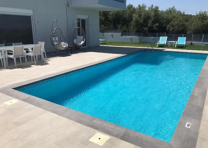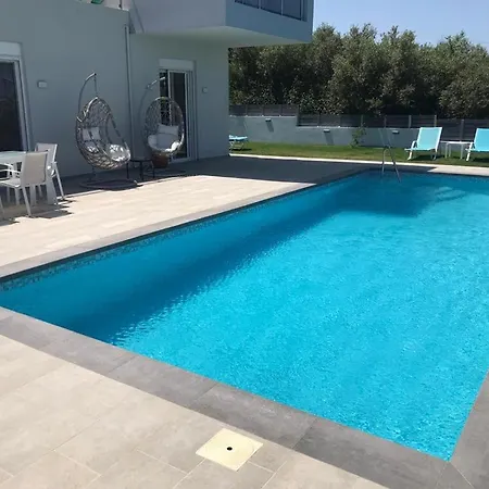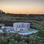 The villa offers an outdoor dining area with tea and coffee-making facilities. There is also a refrigerator, an oven, and glassware to prepare your own meal. Guests can try Greek dishes in Arhontiko Taverna, situated approximately 5 minutes by car from this property.